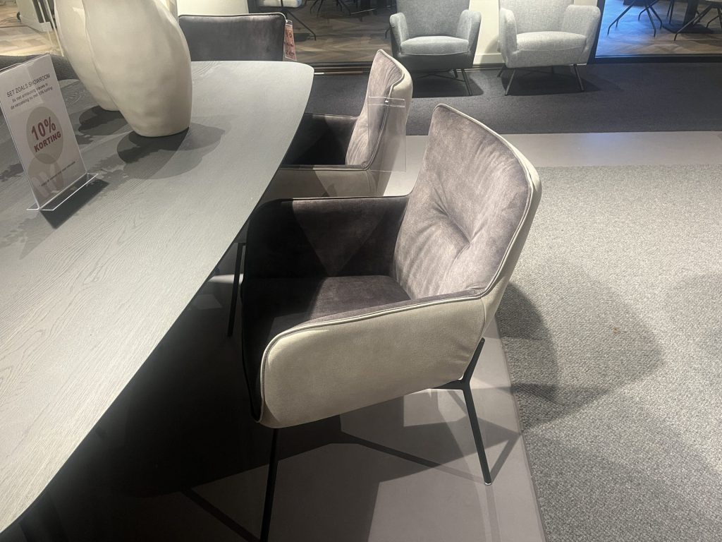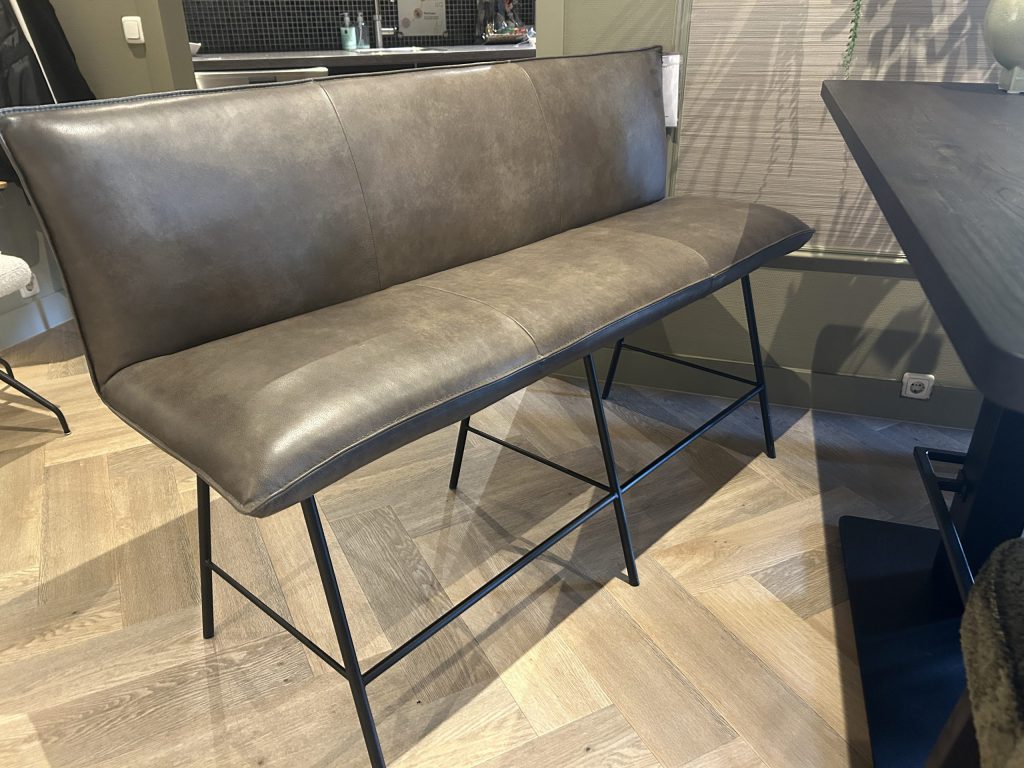 De rechte, ronde poten in zwart gemoffeld staal geven de bank een moderne, industriële look én zorgen voor een stevige basis. Of je nu snel wilt ontbijten of lang wilt natafelen – op de Hamza zit je altijd goed.