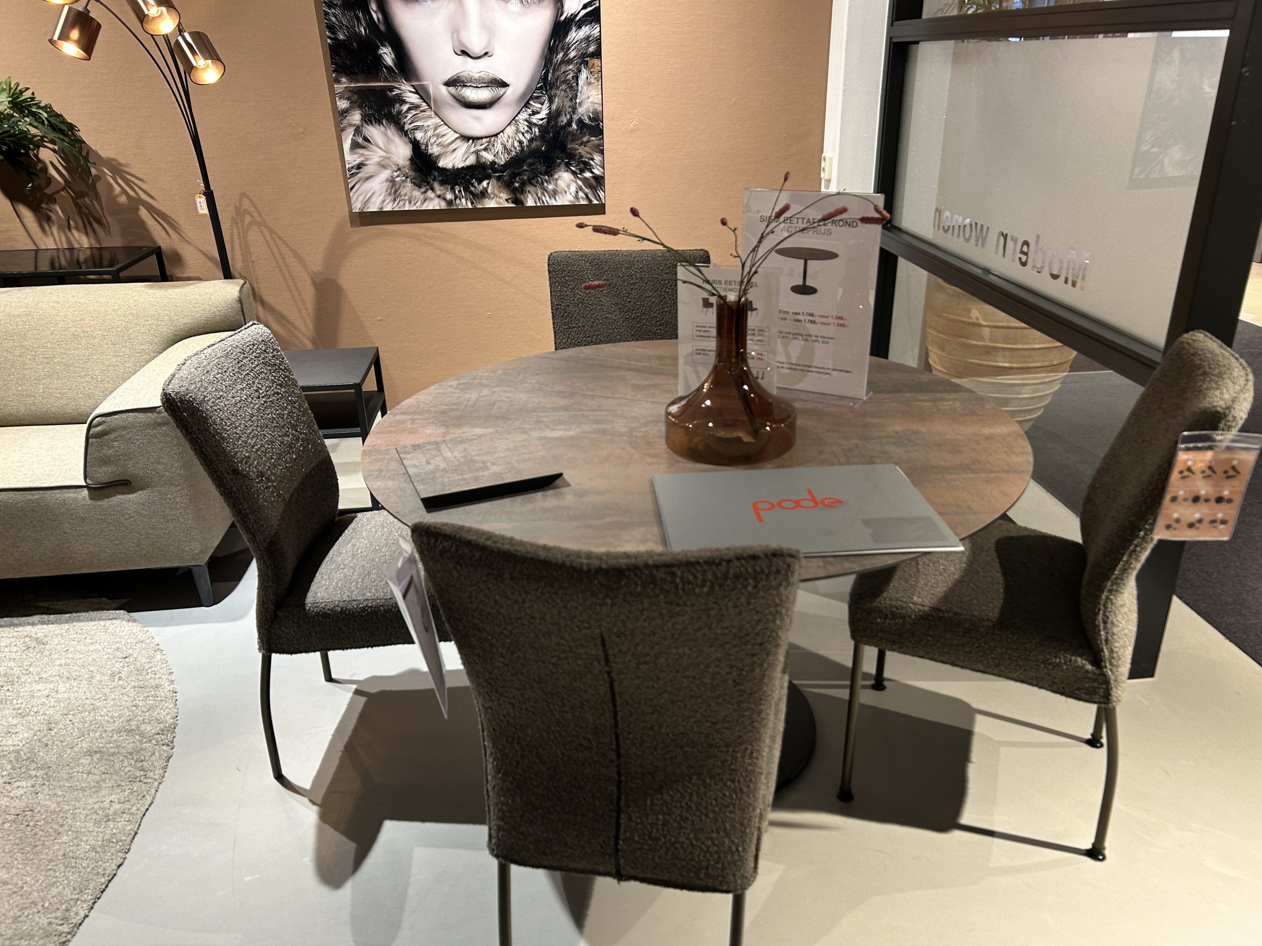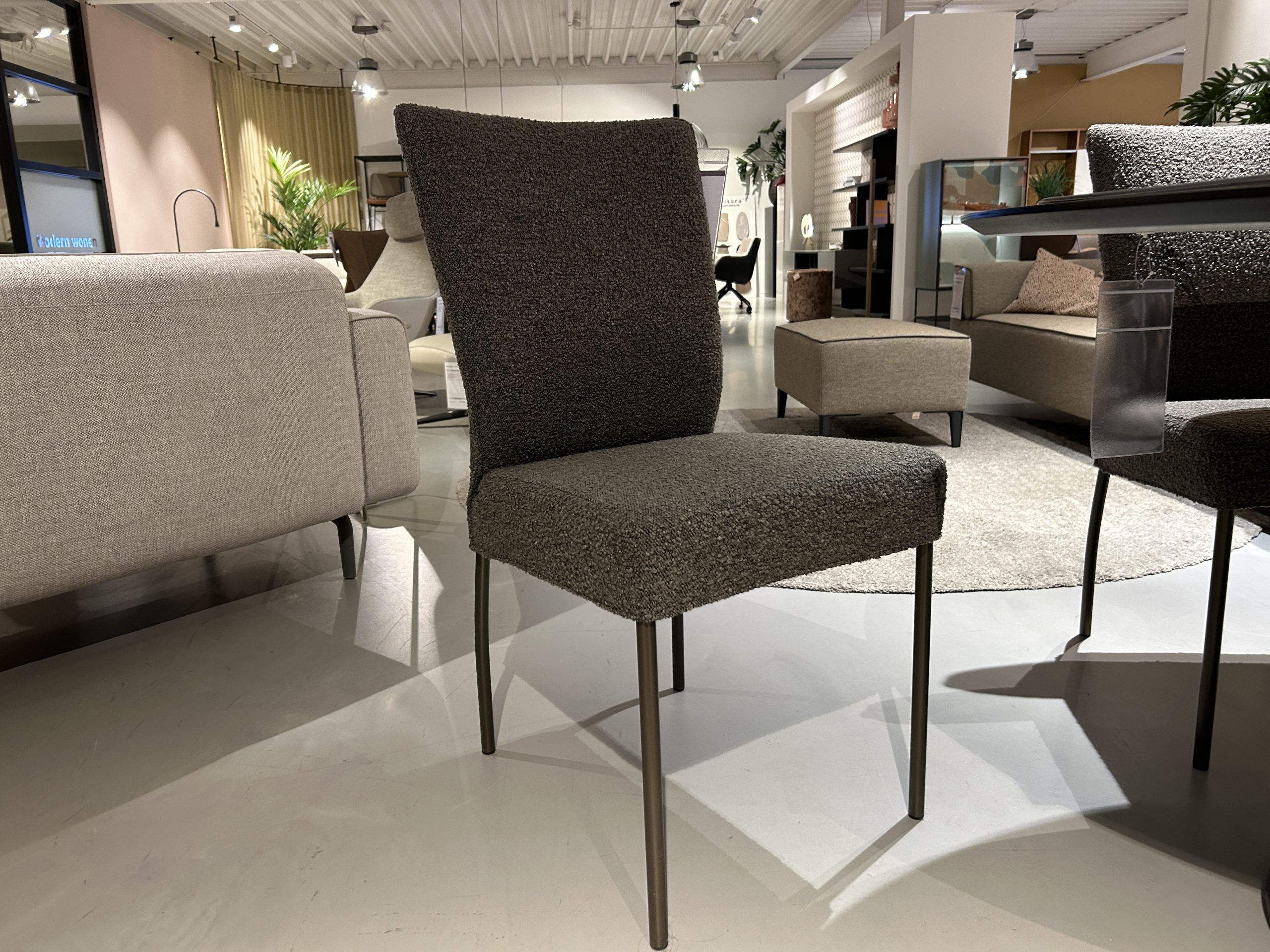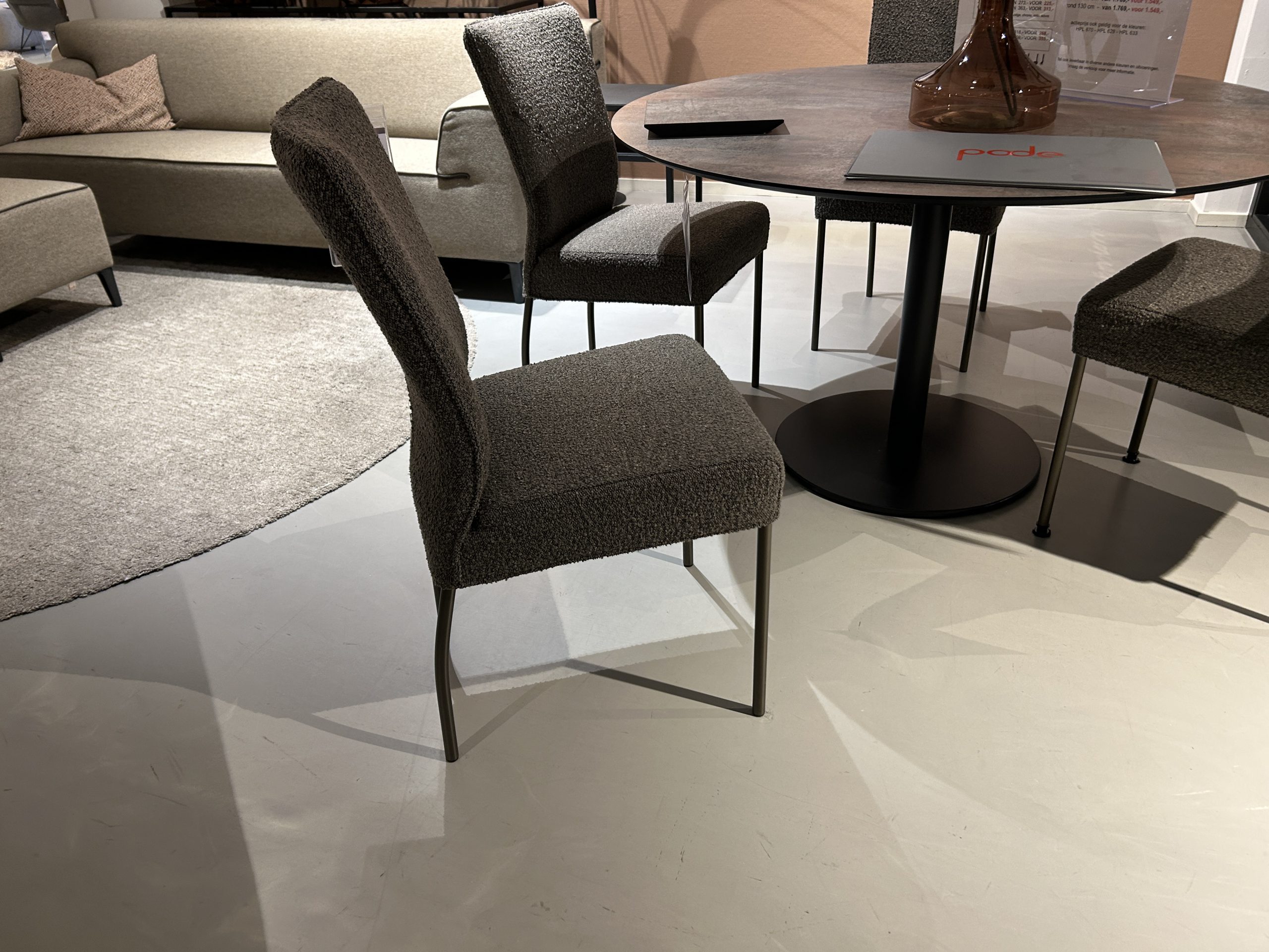 Leuke eetkamerstoelen in een prachtige bruine bouclé stof