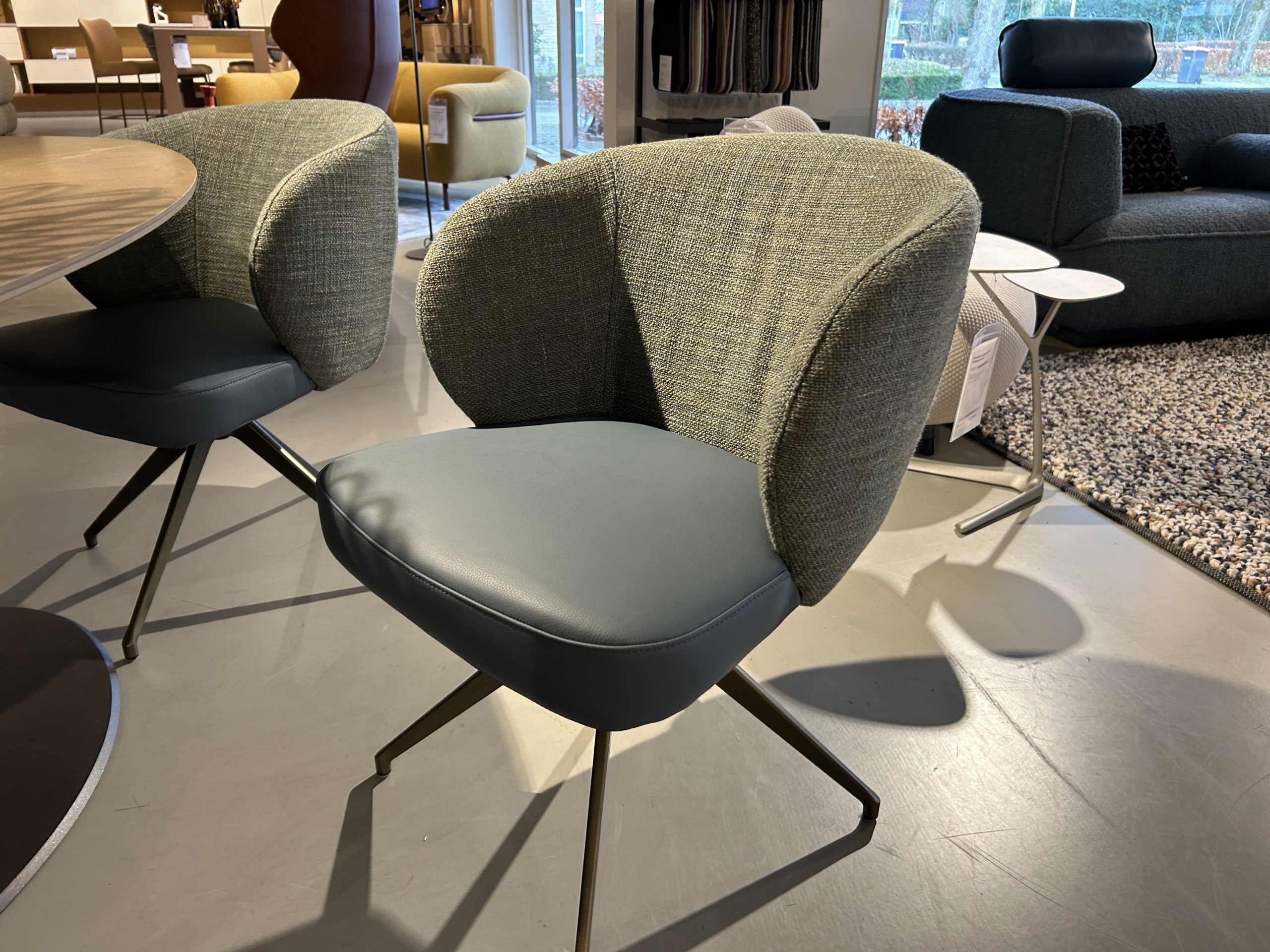 De stoelen staan op een luxe poot in de kleur anodic brown, die het ontwerp een moderne en chique finishing touch geeft. Dankzij de harmonieuze mix van materialen en kleuren passen deze stoelen moeiteloos in zowel een modern als tijdloos interieur.