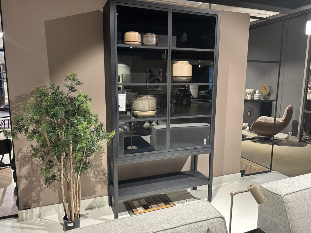 Met zijn industriële uitstraling, volledig metalen frame en elegante glasdeuren, is deze kast dé perfecte mix van robuust en verfijnd. Ideaal om je mooiste items stijlvol tentoon te stellen of juist subtiel achter glas op te bergen.