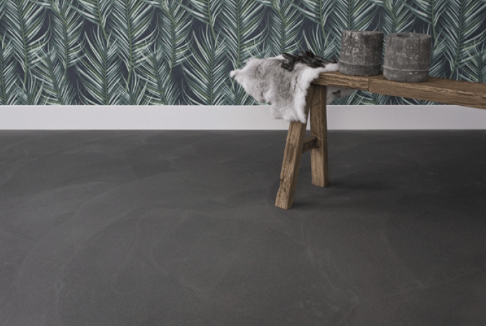 In de woonkeuken is een gietvloer gelegd. Deze vloer is in oneindig veel kleuren leverbaar waardoor de vloer helemaal kan worden afgestemd op het interieur. In deze woning is gekozen voor een donker groene kleur. Samen met de gladde wanden, hoge mdf plinten, een heel gaaf gebloemd behang en stoere stalen schuifdeuren geeft dit veel sfeer in deze prachtige woonkeuken.